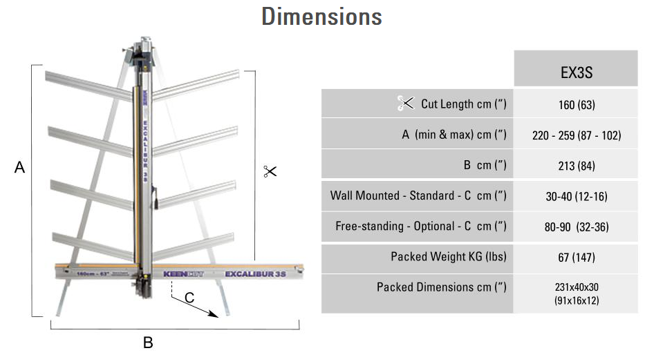Keencut Excalibur 3SThe Excalibur 3S is a premium cutting machine with exceptional return on investment. It is ideal for those who do not need the heavy production features of the SteelTrak. Wall mounted to save space but with an optional freestanding kit if required. The Excalibur 3S is suited to the regular cutting of light and medium-weight boards and can also cut tough materials including 3mm (3/32″) aluminium composite panels. Perfect Cuts Reduces Set-up time ![]() ![]() |